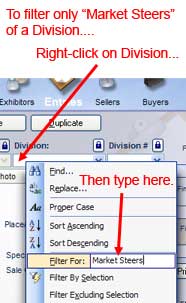 Filter the entries for the "Market Steers" division by right-clicking on the