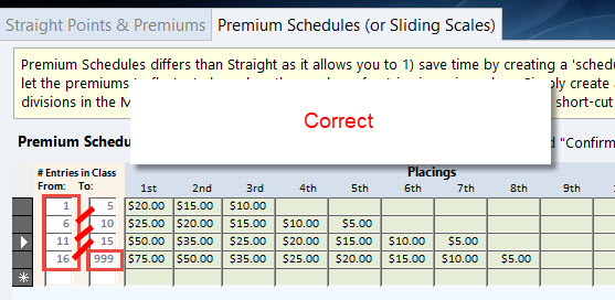 4) Above is a correctly setup premium Schedule (formerly known as Sliding Scale Premiums in versions prior to ShoWorks 2020).