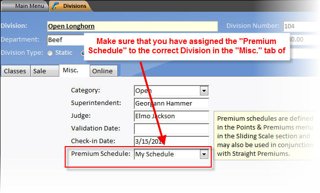 6) Make sure that the correct schedule is assigned to the correct division in the Divisions menu.