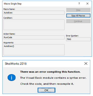 "There was an error compiling this function. The Visual Basic module contains a syntax error..."