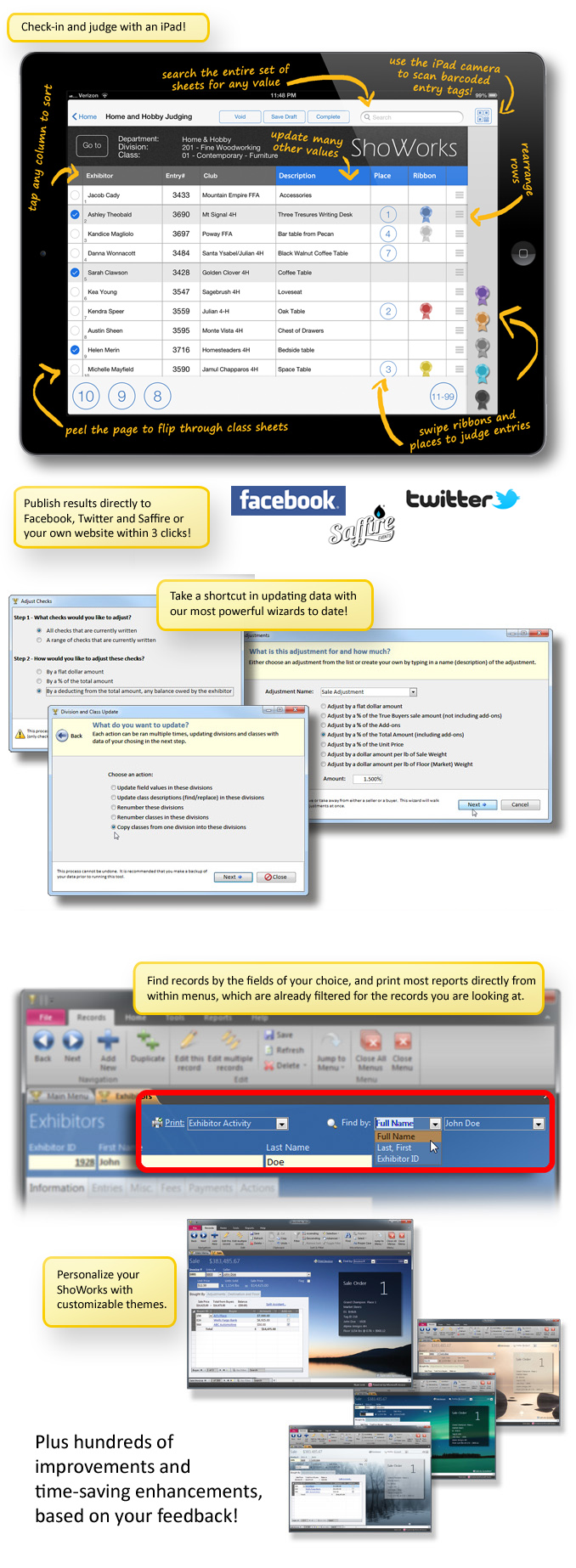 Now use consistent and new 'Themes' across all platforms including the desktop, online entries and the ShoWorks iPad app