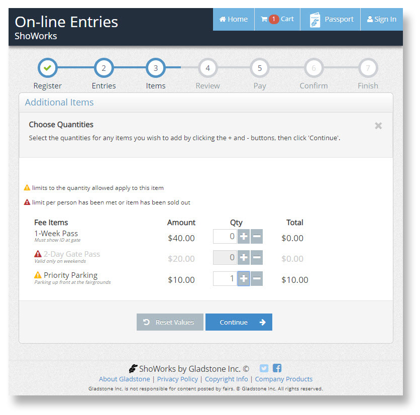 Set custom processing fees online (typically used for passing forward credit card fees). Assign payment bypass (coupon) codes. Take credit cards for auction payments online. Take PayPal payments as well as traditional credit cards. ShoWorks leverages it's market presence in the fair industry with passing on volume discounting of fees it has received from PayPal, directly benefiting the fair.See your fair status at a glance