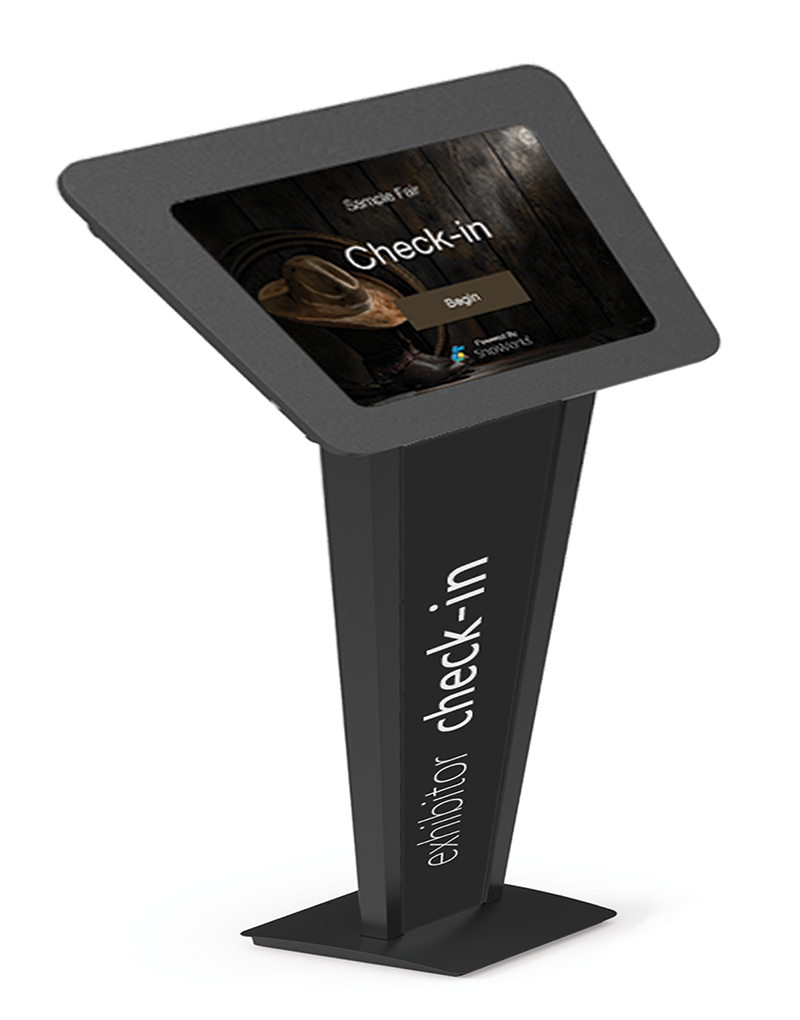 - Self-check-in for your exhibitors via kiosk (using an iPad mounted in stands).