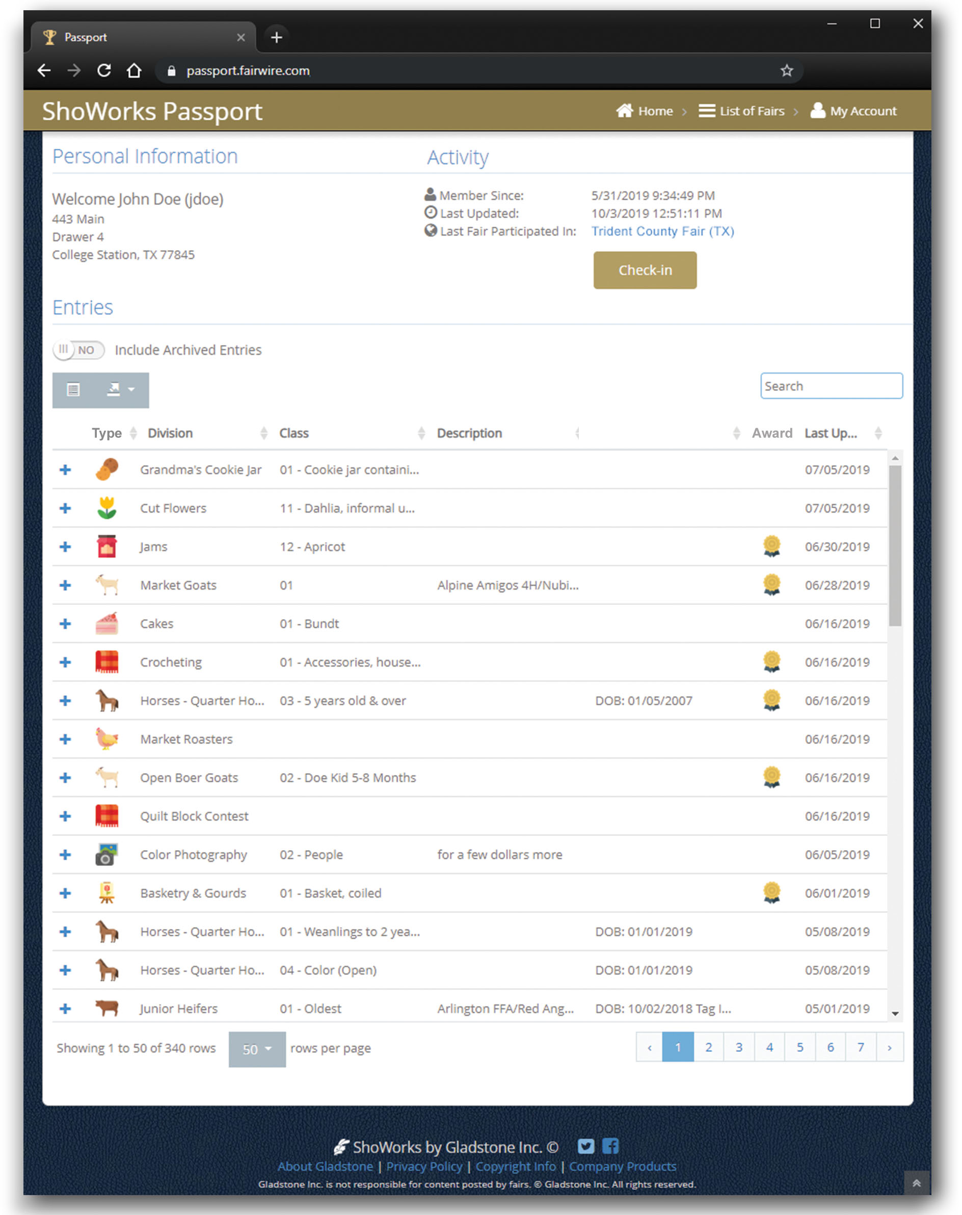 Exhibitors can now create their own, free, permanent account called a 'ShoWorks Passport' and keep up with their entries including seeing instant updates to those entries when changed by the fair. They can keep their account information year-to-year and across other fairs and even reuse past entries from their own library of entries, saving them time and errors. Create entries across over 1,000 participating fairs in North America, directly from within the ShoWorks Passport app for iPhone or Android or a web browser.