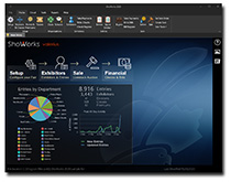 The main menu of ShoWorks now shows a timeline of when and how many entries have been added and updated each day over the past 30-days. It also shows a graphical breakdown of the number of entries in each department.